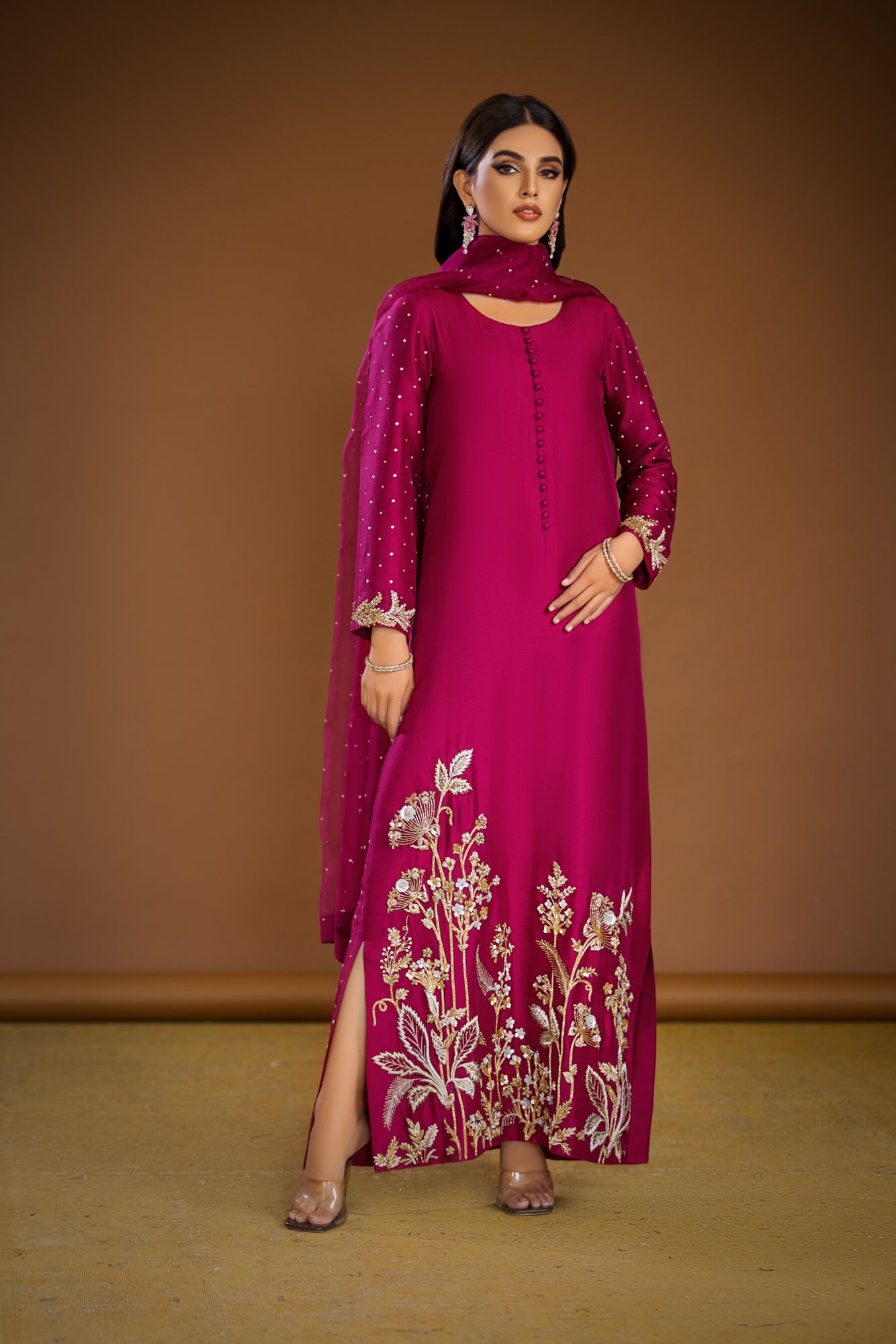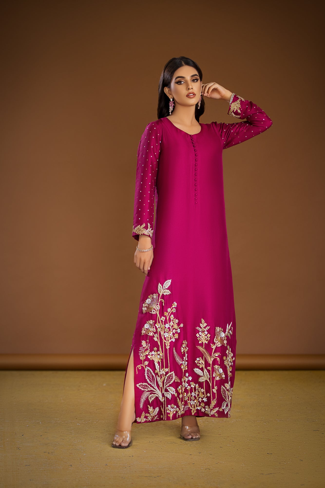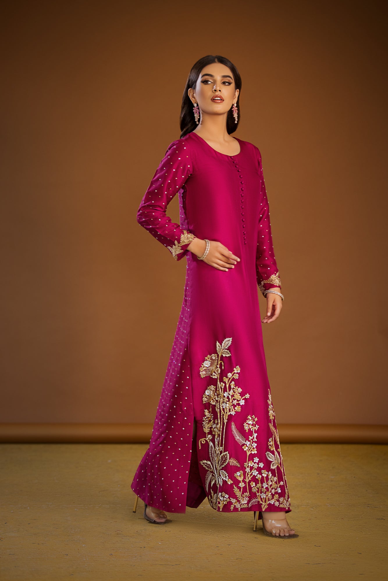 Exquisitely designed with a medley of sequins and dainty handwork, the floral details that adorn the maxi come together as a graceful composition.
